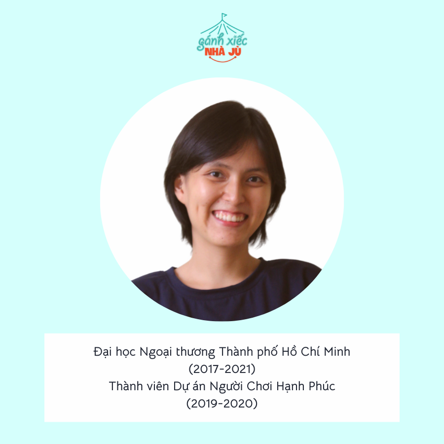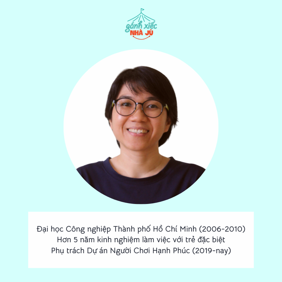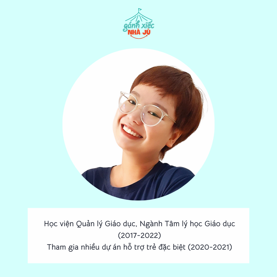 Khi đến với Gánh Xiếc, mình đã học được rất nhiều kiến thức hay để có thể giúp đỡ cho các bạn nhỏ và gia đình. Mình đã nhận được  yêu thương và học được cách trao sự yêu thương. Chính vì thế mình mong rằng có thể góp được kiến thức nhỏ bé và trao tình yêu thương như mình đã nhận được cho “thế giới đặc biệt” này.